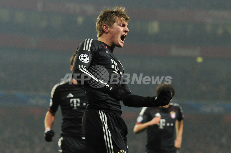 前半7分に先制点を挙げて喜ぶバイエルン・ミュンヘンのトニ・クロース(Toni Kroos、2013年2月19日撮影)。(c)AFP/GLYN KIRK