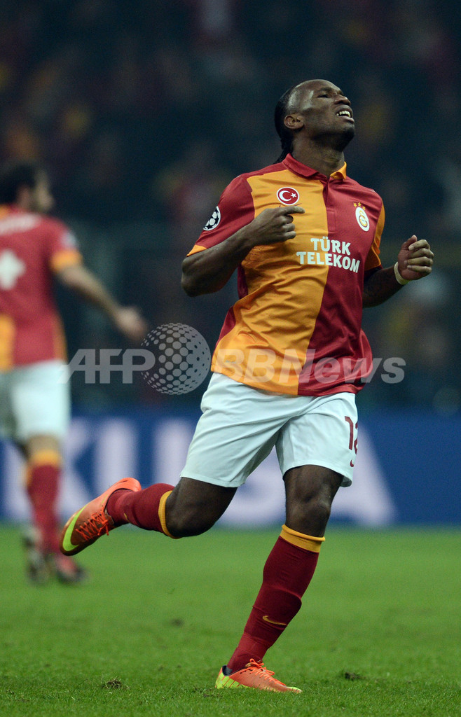 天を仰ぐガラタサライのディディエ・ドログバ(Didier Drogba、2013年2月20日撮影)。(c)AFP/DIMITAR DILKOFF