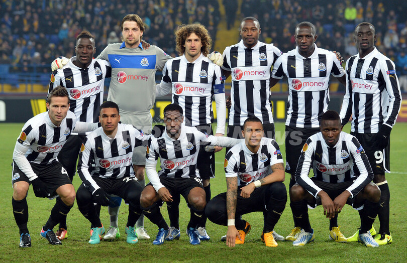 試合前の写真撮影に臨むニューカッスルの選手(2013年2月21日撮影)。(c)AFP/SERGEI SUPINSKY