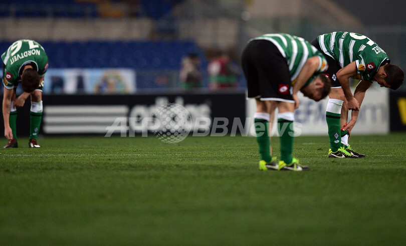 敗退が決まり落胆するボルシア・メンヘングラッドバッハの選手(2013年2月21日撮影)。(c)AFP/FILIPPO MONTEFORTE