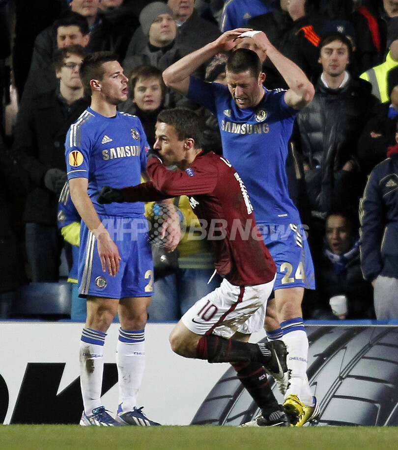 【2月22日 AFP】サッカーヨーロッパリーグ2012-13(UEFA Europa League 2012-13)は21日、決勝トーナメント1回戦の第2戦が各地で行われ、チェルシー(Chelsea)は1-1でスパルタ・プラハ(Sparta Prague)と引き分け、2試合合計スコア2-1でベスト16入りを決めた。