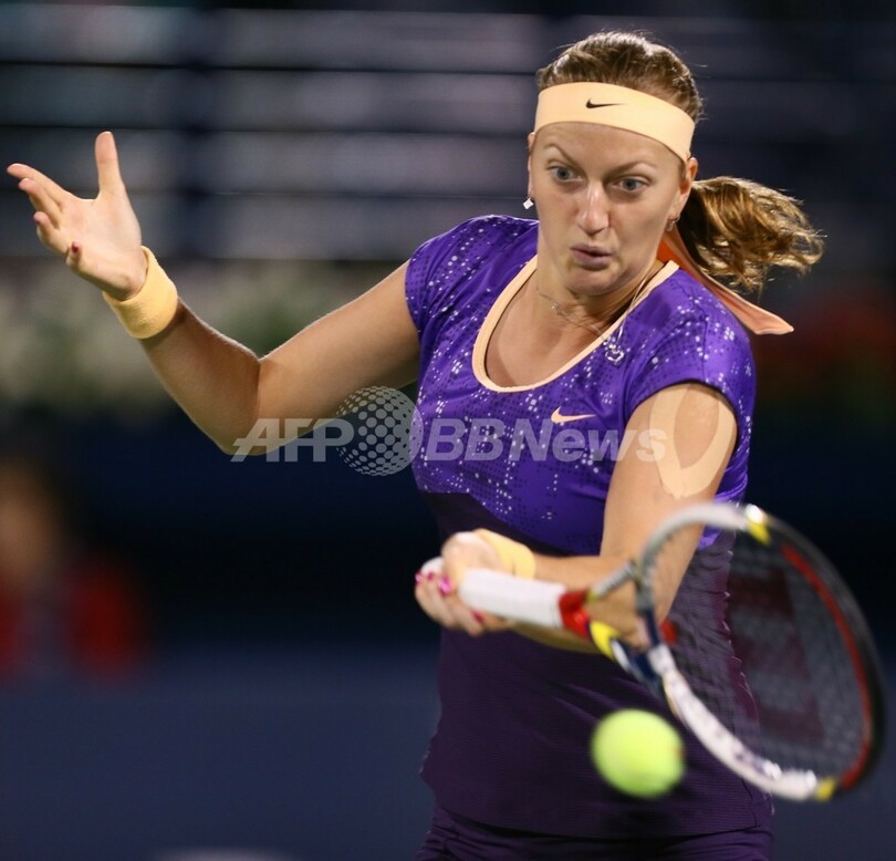 リターンを打つペトラ・クヴィトバ(2013年2月23日撮影)。(c)AFP/MARWAN NAAMANI