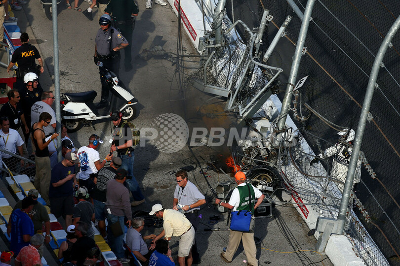 このレースで優勝を飾ったトニー・スチュワート(Tony Stewart)は、「このスポーツが危険なことは周知のこと。喜びたいのはやまやまだけれど、今はファンとドライバーたちのことが心配だ」とコメントしている。(c)AFP