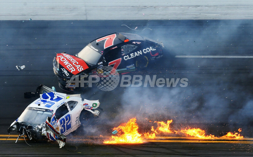 【2月24日 AFP】(記事更新)米フロリダ(Florida)州デイトナビーチ(Daytona Beach)で23日に行われたNASCARネイションワイド・シリーズ(NASCAR Nationwide Series)開幕戦で複数台が絡むクラッシュが発生し、事故車のタイヤや破片がスタンドに飛び込んで観客に負傷者が出た。