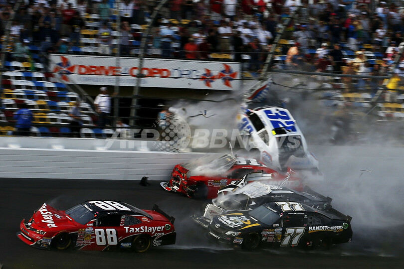 【2月24日 AFP】(記事更新)米フロリダ(Florida)州デイトナビーチ(Daytona Beach)で23日に行われたNASCARネイションワイド・シリーズ(NASCAR Nationwide Series)開幕戦で複数台が絡むクラッシュが発生し、事故車のタイヤや破片がスタンドに飛び込んで観客に負傷者が出た。