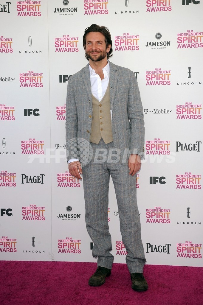 写真は、レッドカーペットに姿を見せた俳優ブラッドリー・クーパー(Bradley Cooper、2013年2月23日撮影)。(c)AFP/Mehdi TAAMALLAH