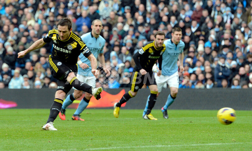 PKを蹴るチェルシーのフランク・ランパード(Frank Lampard、左、2013年2月24日撮影)。(c)AFP/PAUL ELLIS