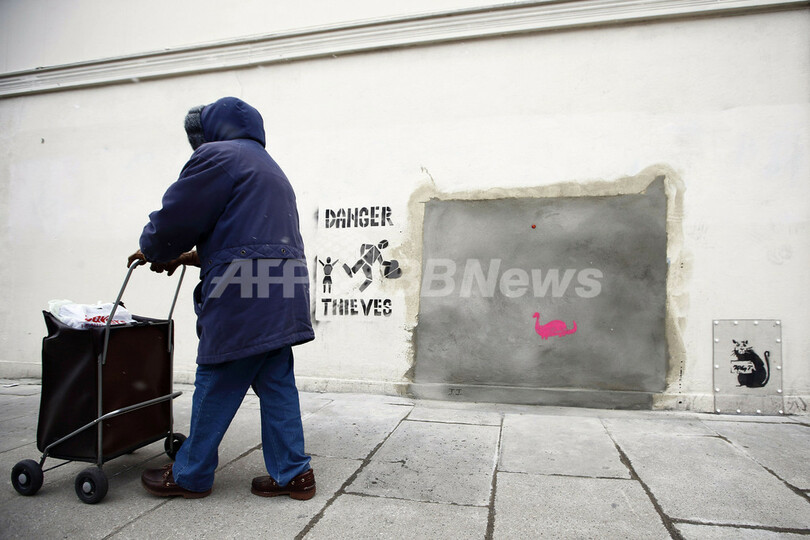 【2月25日 AFP】英国のグラフィティ(落書き)アーティスト、バンクシー(Banksy)氏がロンドン(London)市内の壁に描いた絵が、米国で競売にかけられることが分かったが、怒った住民たちの抗議によって競売への出品は中止されたと、地元自治体が24日、明らかにした。