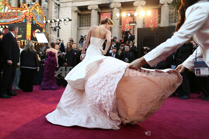 第85回アカデミー賞(Academy Awards)授賞式が24日、米ハリウッド(Hollywood)の「ドルビー・シアター(Dolby Theatre)」で開催され、多くのスターがレッドカーペットを歩いた。写真は、女優ジェニファー・ローレンス(Jennifer Lawrence、2013年2月24日撮影)。(c)AFP/Getty Images/Christopher Polk