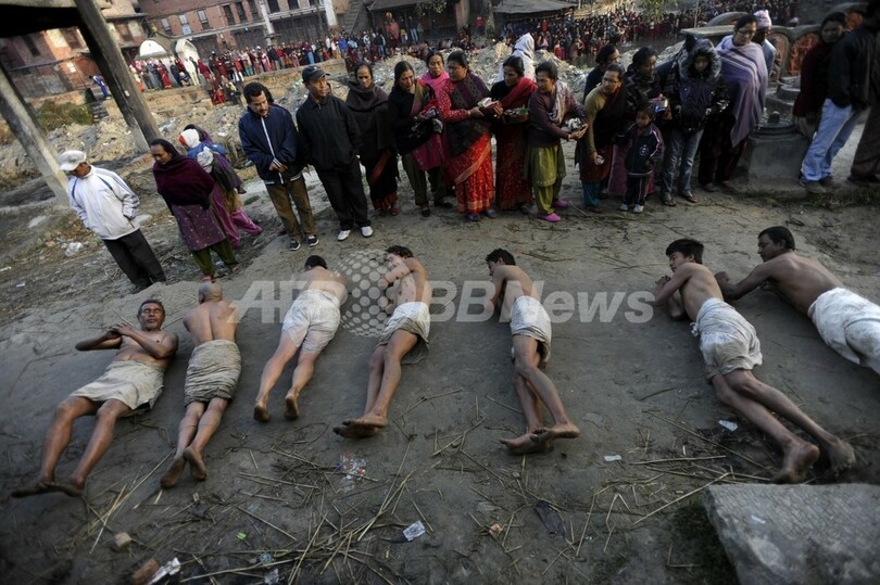 ニュース ライフ 地面転がり礼拝、ヒンズー教の祭り ネパール 2013年2月25日 17:42 発信地:カトマンズ/ネパール [ アジア・オセアニア ネパール ] このニュースをシェア ‹ › ❮ 7/7 ❯ ネパールの首都カトマンズ(Kathmandu)の郊外で、1か月に及んだヒンズー教の儀式「スワスタニ(Swasthani)」最終日の25日、沐浴後に地面で転がって祈りを捧げる信者の姿が見られた(2013年2月25日撮影)。(c)AFP/Prakash MATHEMA 画像作成中 ! 【2月25日 AFP】ネパールの首都カトマンズ(Kathmandu)の郊外で、1か月に及んだヒンズー教の祭り「スワスタニ(Swasthani)」最終日の25日、沐浴後に地面で転がって祈りを捧げる信者の姿が見られた。(c)AFP ライフ 一覧へ> メディア・報道関係・法人の方向け 写真・動画 購入のお問合せ>