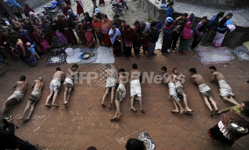 ニュース ライフ 地面転がり礼拝、ヒンズー教の祭り ネパール 2013年2月25日 17:42 発信地:カトマンズ/ネパール [ アジア・オセアニア ネパール ] このニュースをシェア ‹ › ❮ 6/7 ❯ ネパールの首都カトマンズ(Kathmandu)の郊外で、1か月に及んだヒンズー教の儀式「スワスタニ(Swasthani)」最終日の25日、沐浴後に地面で転がって祈りを捧げる信者の姿が見られた(2013年2月25日撮影)。(c)AFP/Prakash MATHEMA 画像作成中 ! 【2月25日 AFP】ネパールの首都カトマンズ(Kathmandu)の郊外で、1か月に及んだヒンズー教の祭り「スワスタニ(Swasthani)」最終日の25日、沐浴後に地面で転がって祈りを捧げる信者の姿が見られた。(c)AFP ライフ 一覧へ> メディア・報道関係・法人の方向け 写真・動画 購入のお問合せ>
