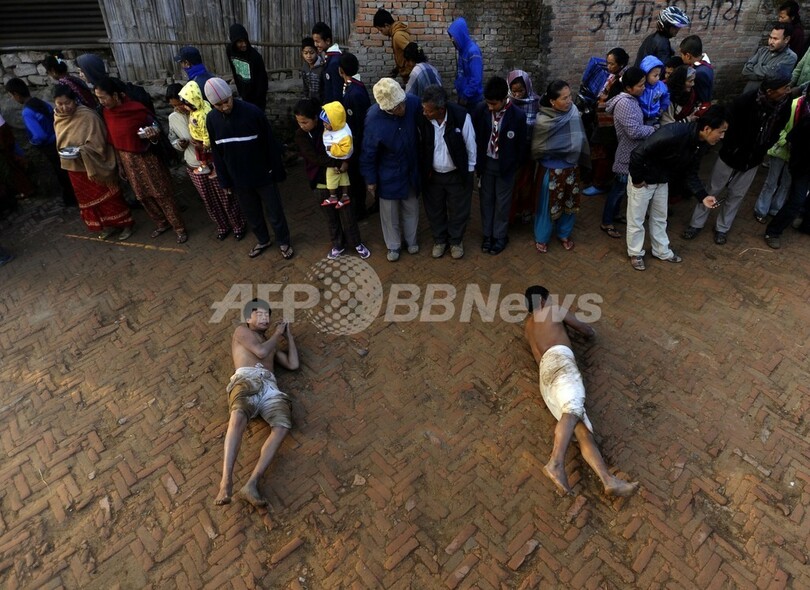ニュース ライフ 地面転がり礼拝、ヒンズー教の祭り ネパール 2013年2月25日 17:42 発信地:カトマンズ/ネパール [ アジア・オセアニア ネパール ] このニュースをシェア ‹ › ❮ 4/7 ❯ ネパールの首都カトマンズ(Kathmandu)の郊外で、1か月に及んだヒンズー教の儀式「スワスタニ(Swasthani)」最終日の25日、沐浴後に地面で転がって祈りを捧げる信者の姿が見られた(2013年2月25日撮影)。(c)AFP/Prakash MATHEMA 画像作成中 ! 【2月25日 AFP】ネパールの首都カトマンズ(Kathmandu)の郊外で、1か月に及んだヒンズー教の祭り「スワスタニ(Swasthani)」最終日の25日、沐浴後に地面で転がって祈りを捧げる信者の姿が見られた。(c)AFP ライフ 一覧へ> メディア・報道関係・法人の方向け 写真・動画 購入のお問合せ>