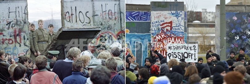 1961年に立てられたベルリンの壁は全長155キロメートルで、89年までベルリン市を東西に分断していた。ロナルド・レーガン(Ronald Reagan)元米大統領はベルリンの壁崩壊の2年前、壁近くにある同市の名所「ブランデンブルク門(Brandenburg Gate)」で、ミハイル・ゴルバチョフ(Mikhail Gorbachev)元ソ連大統領に対して「この壁を取り壊せ!」と要請する有名な演説を行った。