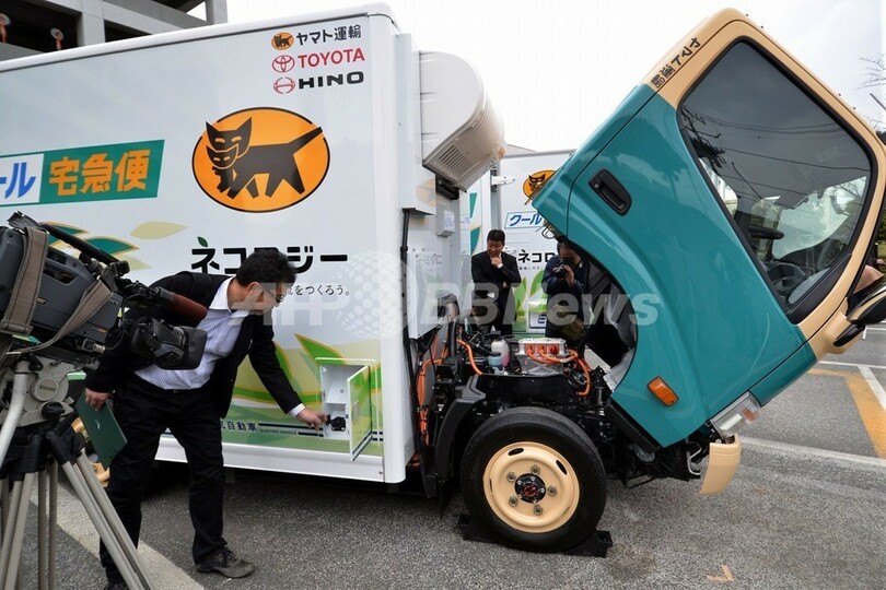 ニュース 政治・経済 トヨタのEVトラックで集配、ヤマト運輸が実証運行へ 2013年3月2日 14:00 発信地:東京 [ アジア・オセアニア 東京 ] このニュースをシェア ‹ › ❮ 1/6 ❯ トヨタ自動車(Toyota Motor)と子会社の日野自動車(Hino Motors)が都内で公開した電動小型トラック(EVトラック)。ヤマト運輸(Yamato Transport)が3月半ばから実証運行を行う(2013年3月1日撮影)。(c)AFP/Yoshikazu TSUNO 画像作成中 ! 【3月2日 AFP】トヨタ自動車(Toyota Motor)と子会社の日野自動車(Hino Motors)は1日、リチウムイオン電池で稼働する新型の電動小型トラック(EVトラック)を発表した。冷凍冷蔵バンを架装した1トンEVトラックで、走行時の排出ガスがゼロであることが特徴だ。ヤマト運輸(Yamato Transport)が今月中旬から同型車2台を使った実証運行を行う。(c)AFP 政治・経済 一覧へ> メディア・報道関係・法人の方向け 写真・動画 購入のお問合せ>