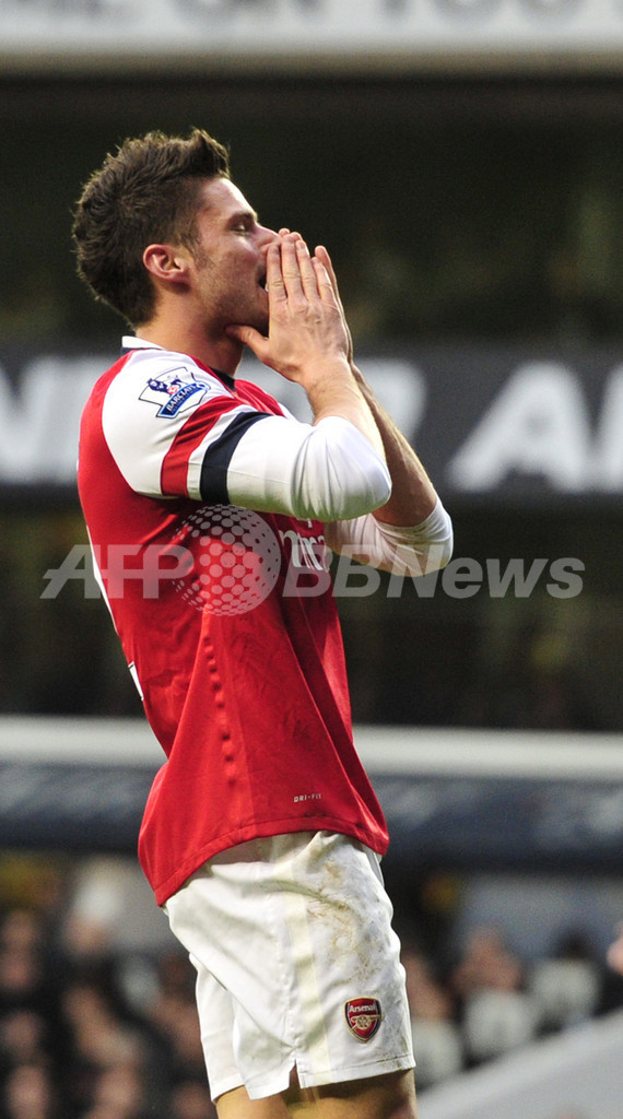 好機を逸し落胆するアーセナルのオリヴィエ・ジルー(Olivier Giroud、2013年3月3日撮影)。(c)AFP/GLYN KIRK