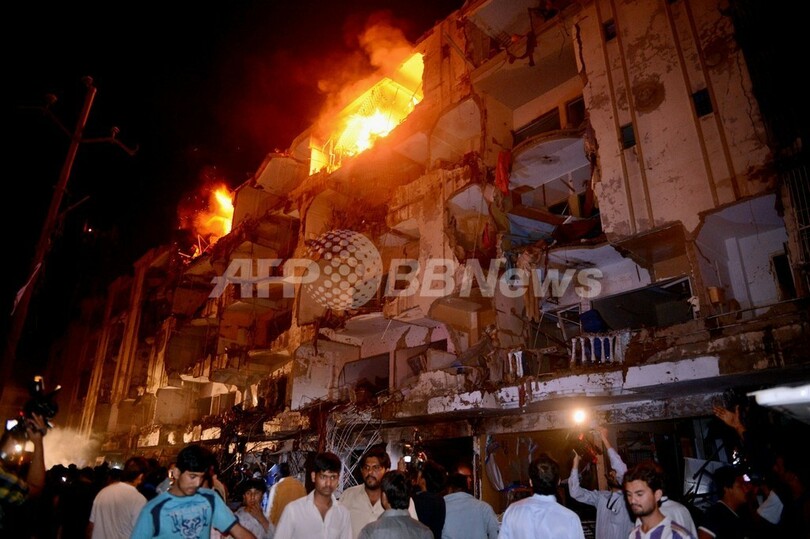 爆発が起きたのはカラチの住宅街アッバス(Abbas)地区で、5階建ての集合住宅2棟の前面が吹き飛んだ。そのうちの1棟で火災が発生、がれきの下敷きになった人もいた。近接するモスクから信者が帰路につく中発生したこの爆発により、何百もの店舗や住宅が激しく損傷し、被害にあった集合住宅のベランダも倒壊した。