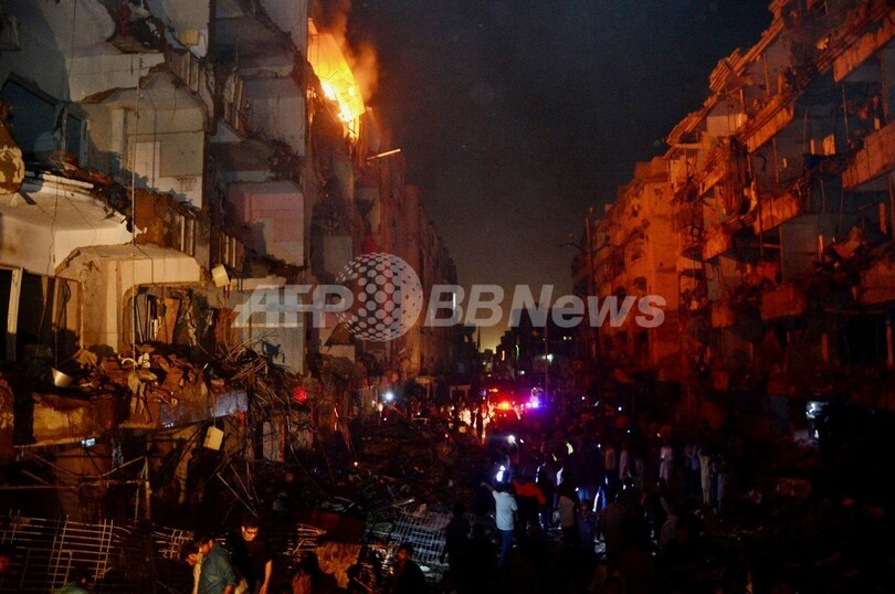 爆発が起きたのはカラチの住宅街アッバス(Abbas)地区で、5階建ての集合住宅2棟の前面が吹き飛んだ。そのうちの1棟で火災が発生、がれきの下敷きになった人もいた。近接するモスクから信者が帰路につく中発生したこの爆発により、何百もの店舗や住宅が激しく損傷し、被害にあった集合住宅のベランダも倒壊した。