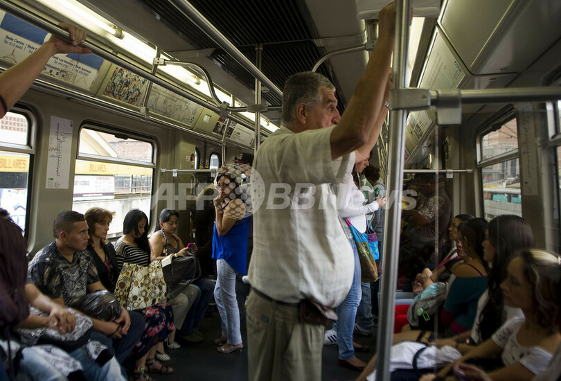 写真はメデジンの地下鉄を利用する人々(2003年3月1日撮影)。(c)AFP/Raul ARBOLEDA