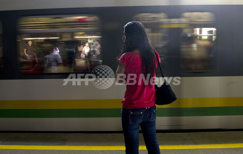 写真はメデジンの地下鉄を利用する女性(2003年3月1日撮影)。(c)AFP/Raul ARBOLEDA