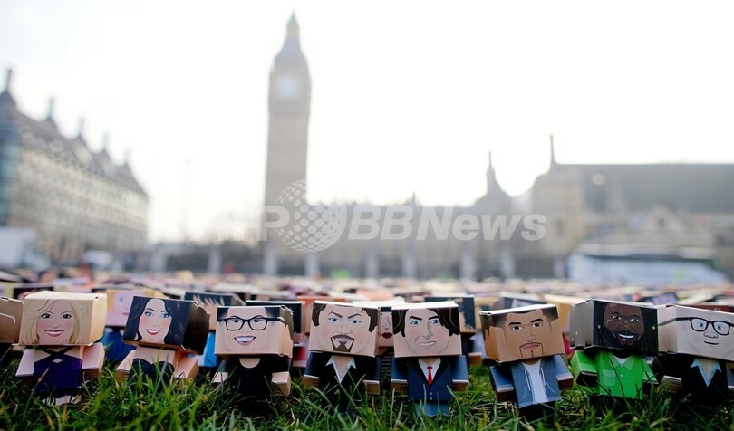 【3月5日 AFP】英ロンドン(London)の国会議事堂前に4日、厚紙で作った数千個の人形が並べられた。フェアトレード基金(Fairtrade Foundation)が主催したもので、6月の主要8か国(G8)首脳会議を前に、デービッド・キャメロン(David Cameron)首相に、世界中の小規模農家を中心に据えた通商政策の立案を求めた。(c)AFP