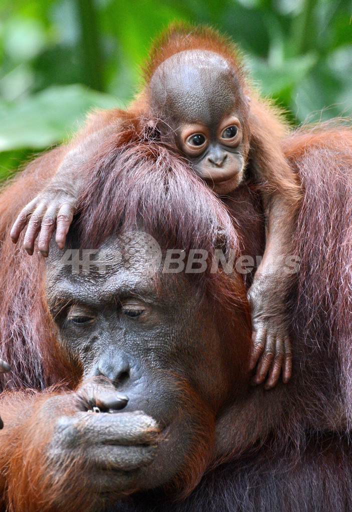 【3月8日 AFP】シンガポールのシンガポール動物園(Singapore Zoo)で、ボルネオオランウータンのマリ(Mari)とその赤ちゃんがくつろぐ様子が見られた。赤ちゃんは同動物園で生まれた40匹目のオランウータンで、今年の1月21日に生まれた。オスのオランウータンで、名前はまだ決まっていない。同動物園では絶滅が危惧されているスマトラオランウータン、ボルネオオランウータンの最大規模のコミュニティが存在している。(c)AFP
