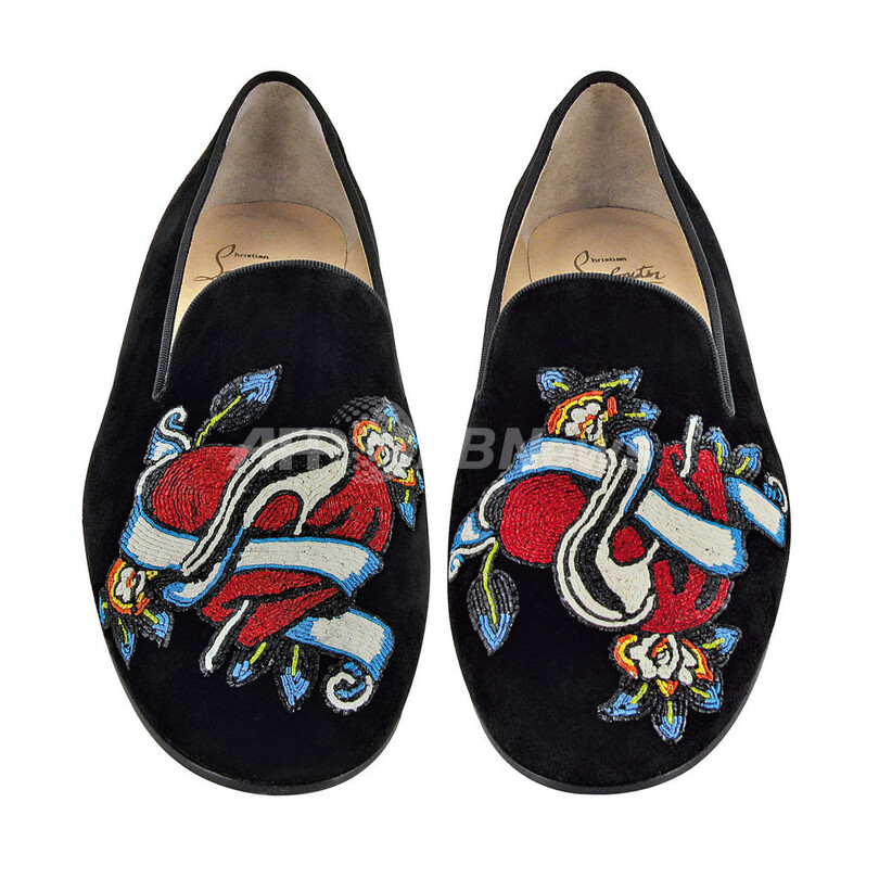 「元々、このアイデアは友人へのプレゼントから生まれました。彼が入れているタトゥーをシューズにデザインしたのです。タトゥーは、その人の人生の一部であり、鎧や紋章のようです」とルブタンが語るように、からだの一部であるタトゥーをそのまま依頼できるのが大きな特徴だ。タトゥー以外にも、要望に合わせてルブタンがデザインする刺繍もオーダーできる。