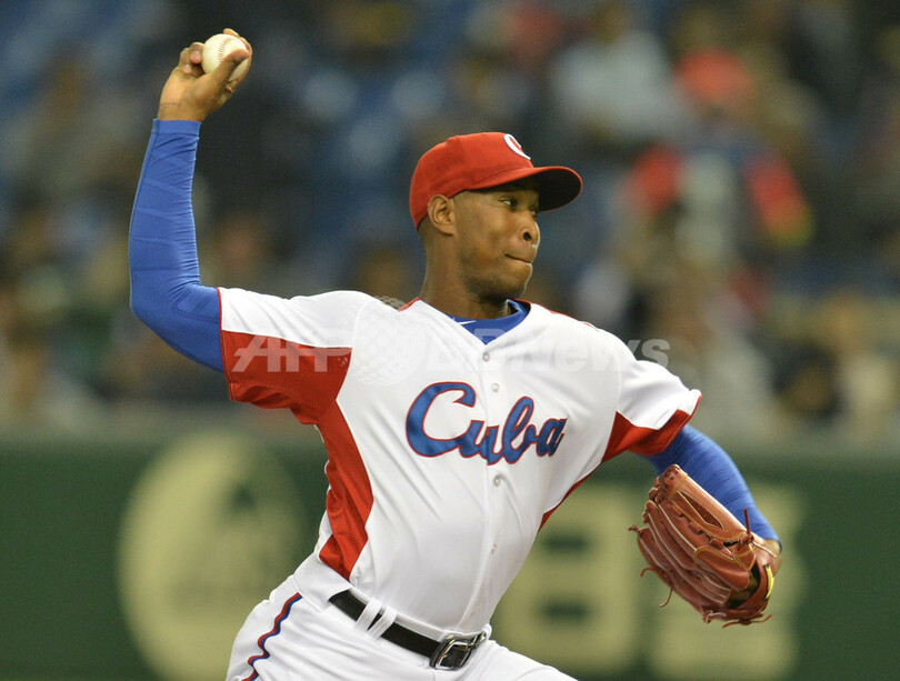 先発登板するキューバのダニー・ベタンコート(Danny Betancourt、2013年3月9日撮影)。(c)AFP/KAZUHIRO NOGI