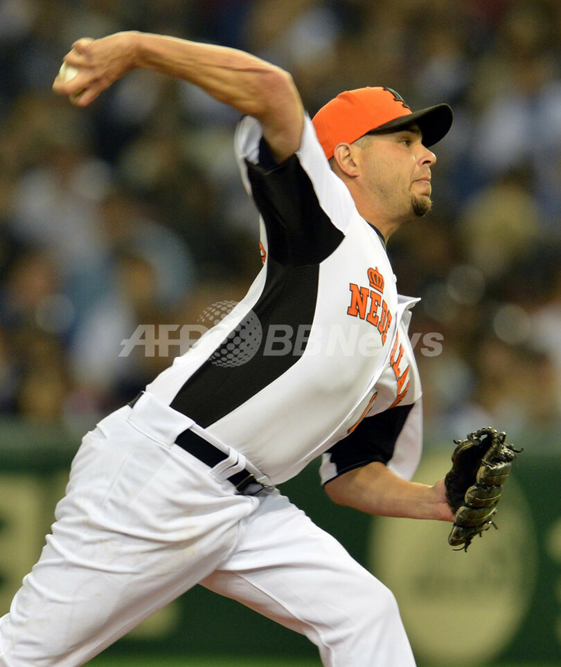日本戦に先発登板したオランダのロビー・コルデマンス(Wladimir Balentien、2013年3月10日撮影)。(c)AFP/KAZUHIRO NOGI