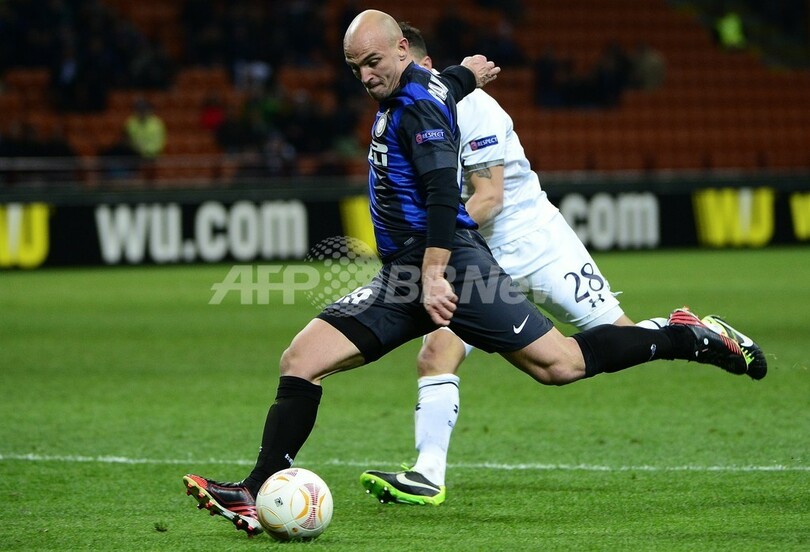 対するインテルは、延長後半5分にカッサーノのクロスからリカルド・アルバレス(Ricardo Alvarez)が得点を挙げたものの、準々決勝進出には届かなかった。(c)AFP/Barnaby Chesterman