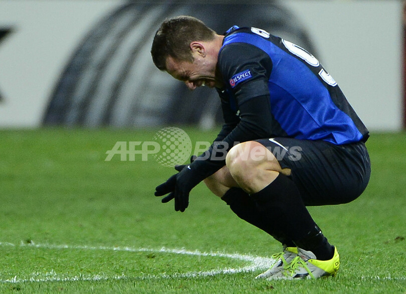 対するインテルは、延長後半5分にカッサーノのクロスからリカルド・アルバレス(Ricardo Alvarez)が得点を挙げたものの、準々決勝進出には届かなかった。(c)AFP/Barnaby Chesterman