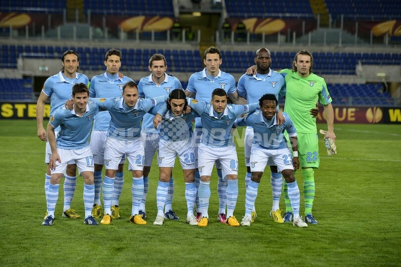 試合前の写真撮影に臨むラツィオの選手(2013年3月14日撮影)。(c)AFP/ANDREAS SOLARO