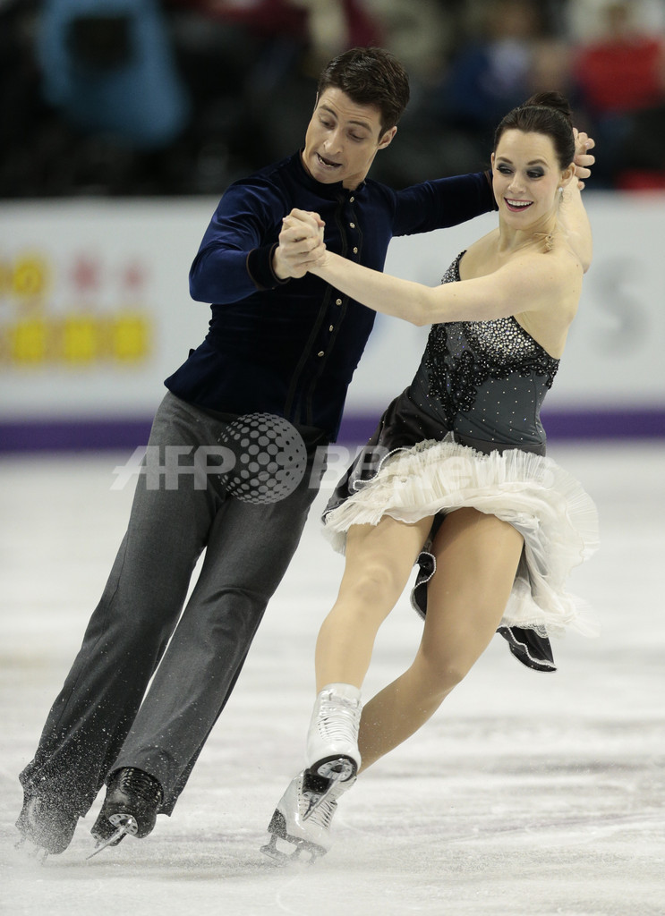 演技に臨むテッサ・ヴァーチュー(Tessa Virtue)/スコット・モイア(Scott Moir)組(2013年3月14日撮影)。(c)AFP/Geoff Robins