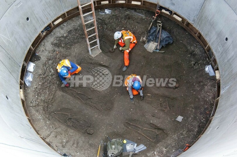 【3月16日 AFP】ロンドン(London)の新鉄道路線の建設現場で、14世紀に欧州を襲った黒死病(Black Death)の犠牲者と思われる13体の人骨が発掘されたと、考古学者らが15日、発表した。
