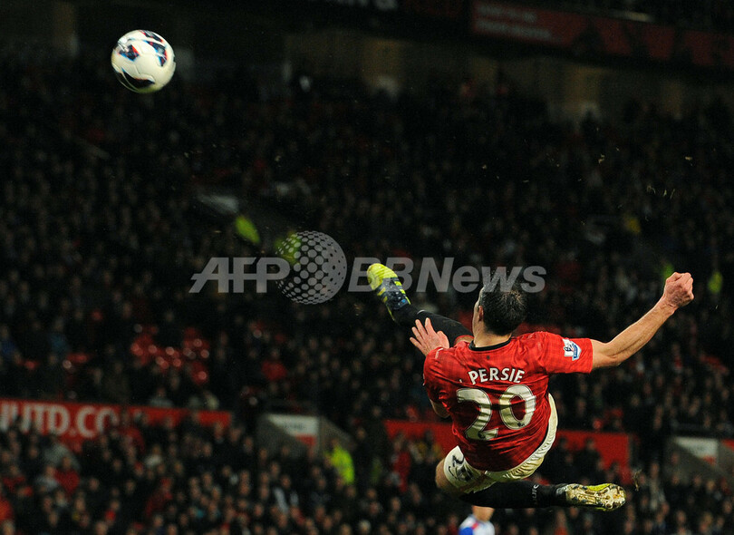 得点を狙うマンチェスター・ユナイテッドのロビン・ファン・ペルシー(Robin Van Persie、2013年3月16日撮影)。(c)AFP/ANDREW YATES