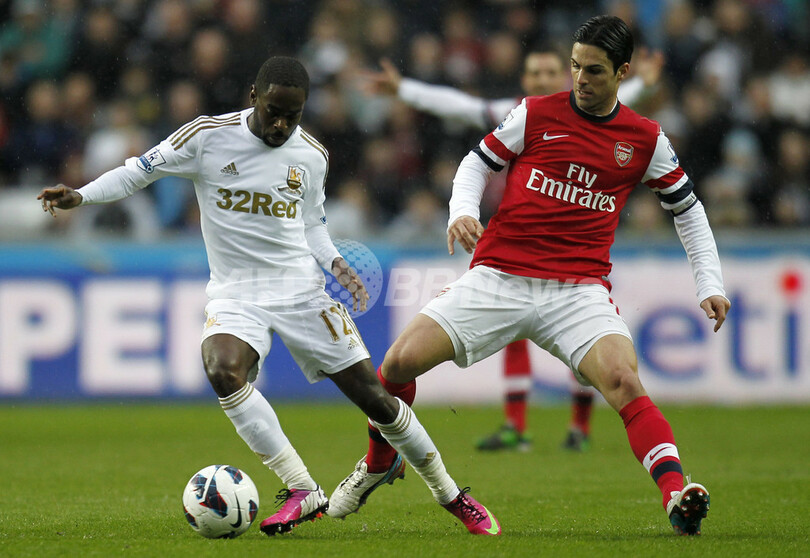 その後、アーセナルは後半ロスタイムにジェルヴィーニョ(Gervinho)が追加点を奪い、同点に持ち込みたかったスウォンジーを突き放している。(c)AFP