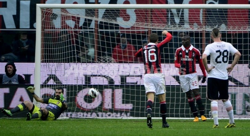 マリオ・バロテッリ(Mario Barwauh Balotelli)がPKを含む2得点を挙げて本拠地で勝利したACミランが、パレルモの下位脱出を阻んだ。