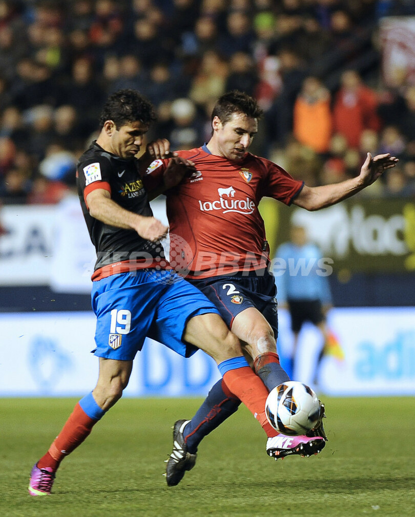 ジエゴ・コスタ(Diego da Silva Costa)が2得点を挙げてオサスナを下したアトレティコは、同都市のライバルであるリーグ2位のレアル・マドリード(Real Madrid)との勝ち点1差を守った。(c)AFP