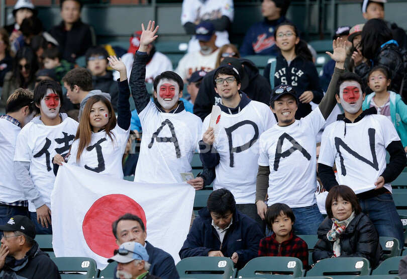 試合開始を待つ日本のファン(2013年3月17日撮影)。(c)AFP/Getty Images/Ezra Shaw