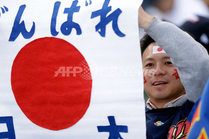 試合開始を待つ日本のファン(2013年3月17日撮影)。(c)AFP/Getty Images/Ezra Shaw