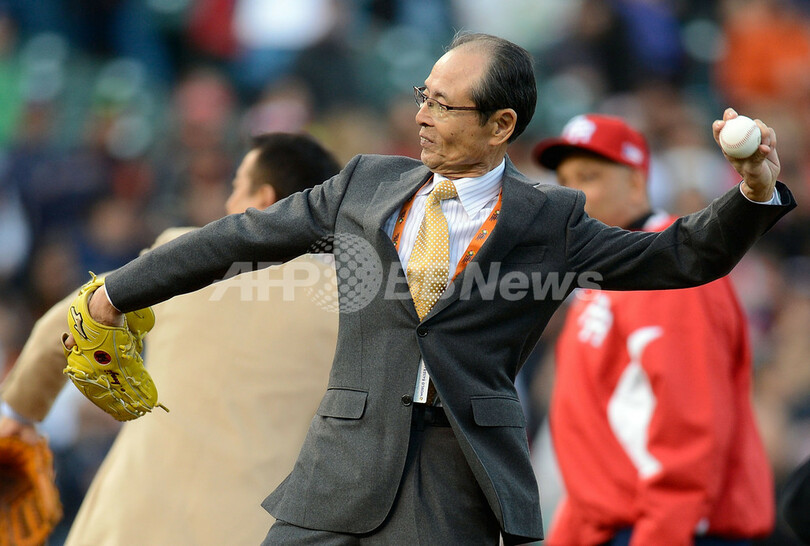 始球式に臨む王貞治(Sadaharu Oh)氏(2013年3月17日撮影)。(c)AFP/Getty Images/Thearon W. Henderson