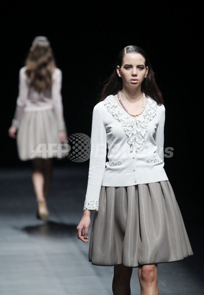テーマは、「イスタンブール~シルクロード」。洋服を通して、自分自身に向き合う、今を生きる凛とした女性へ贈るコレクションは、襟や裾、ポケットなどディテールのクリスタル使いやファー素材の取り入れ方が、女性の心を鷲掴みにする。バルーンスカートやフレアスカートなど、柔らかくて、フワフワしたシルエットがかわいい。ロングネックレスなどアクセサリーでエキゾチックな雰囲気を醸し出す。ショー後半には、シルクロードを彷彿っせる真っ赤なドレスやワンピースなどがずらりと並んだ。【岩田奈那】(c)AFPBB News