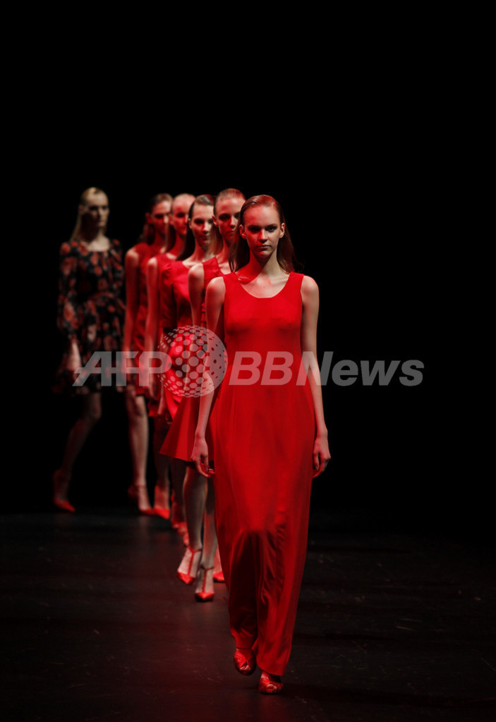 テーマは、「イスタンブール~シルクロード」。洋服を通して、自分自身に向き合う、今を生きる凛とした女性へ贈るコレクションは、襟や裾、ポケットなどディテールのクリスタル使いやファー素材の取り入れ方が、女性の心を鷲掴みにする。バルーンスカートやフレアスカートなど、柔らかくて、フワフワしたシルエットがかわいい。ロングネックレスなどアクセサリーでエキゾチックな雰囲気を醸し出す。ショー後半には、シルクロードを彷彿っせる真っ赤なドレスやワンピースなどがずらりと並んだ。【岩田奈那】(c)AFPBB News