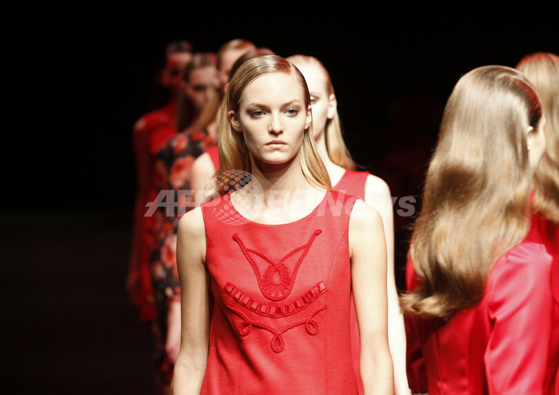 テーマは、「イスタンブール~シルクロード」。洋服を通して、自分自身に向き合う、今を生きる凛とした女性へ贈るコレクションは、襟や裾、ポケットなどディテールのクリスタル使いやファー素材の取り入れ方が、女性の心を鷲掴みにする。バルーンスカートやフレアスカートなど、柔らかくて、フワフワしたシルエットがかわいい。ロングネックレスなどアクセサリーでエキゾチックな雰囲気を醸し出す。ショー後半には、シルクロードを彷彿っせる真っ赤なドレスやワンピースなどがずらりと並んだ。【岩田奈那】(c)AFPBB News