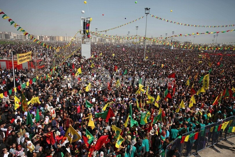 今回の停戦の呼びかけは、クルド人の新年祭「ネブロス(Newroz)」に合わせて行われた。ディヤルバクル(Diyarbakir)の街には新年を祝うためにトルコ全土から数万人のクルド人が集結した。(c)AFP/Nicolas Cheviron