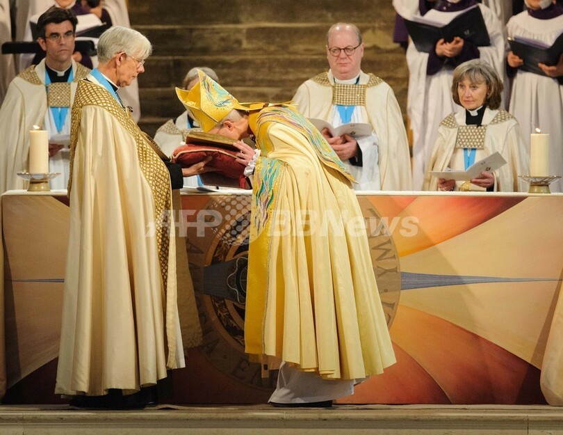 【3月22日 AFP】英国国教会(Church of England)の最高位職であるカンタベリー大主教(Archbishop of Canterbury)に21日、元石油会社役員のジャスティン・ウェルビー(Justin Welby)前ダラム主教(57)が就任、英イングランド(England)南東部カンタベリー(Canterbury)にある12世紀に建造されたカンタベリー大聖堂(Canterbury Cathedral)で就任式が執り行われた。