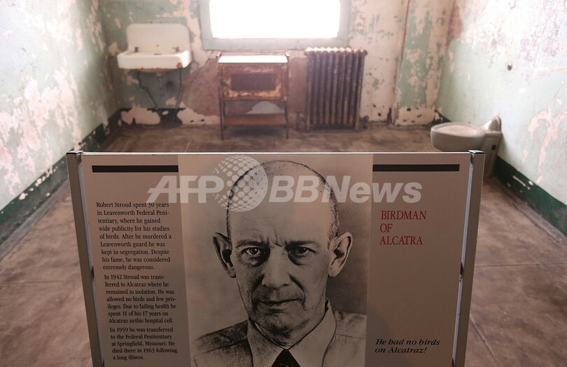 写真は、映画『終身犯(Birdman of Alcatraz、アルカトラズの鳥男)』で知られるロバート・フランクリン・ストラウド(Robert Franklin Stroud)受刑者が入っていた独房(2013年3月21日撮影)。(c)AFP/Getty Images/Justin Sullivan