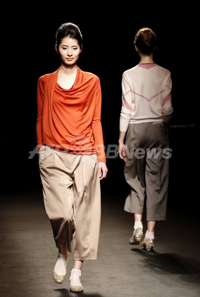 テーマは「煌めきをかたちに」。「表面的な輝きではなく、ときめくような感覚をもってもらえるようなアイテムを作りたかった」とデザイナー.服の外面は多くを語りかけずとも、確実に、シンプルで品の良い、ミニマムなコレクションに仕上がった。 【岩田奈那】(C)AFPBB News