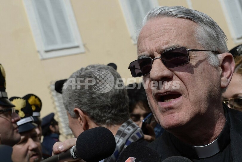 写真は、カステルガンドルフォの離宮前で報道陣の取材に応じる法王庁のフェデリコ・ロンバルディ(Federico Lombardi)広報局長(2013年3月23日撮影)。(c)AFP/ANDREAS SOLARO