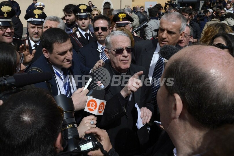 写真は、カステルガンドルフォの離宮前で報道陣の取材に応じる法王庁のフェデリコ・ロンバルディ(Federico Lombardi)広報局長(2013年3月23日撮影)。(c)AFP/ANDREAS SOLARO