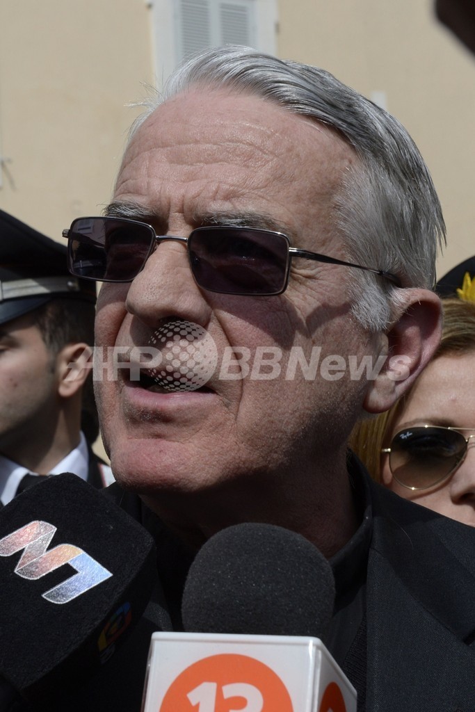写真は、カステルガンドルフォの離宮前で報道陣の取材に応じる法王庁のフェデリコ・ロンバルディ(Federico Lombardi)広報局長(2013年3月23日撮影)。(c)AFP/ANDREAS SOLARO